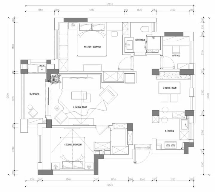 次卧延续了主卧的设计,只是床选择黑色系的,似乎这样的搭配也别有一番风味;