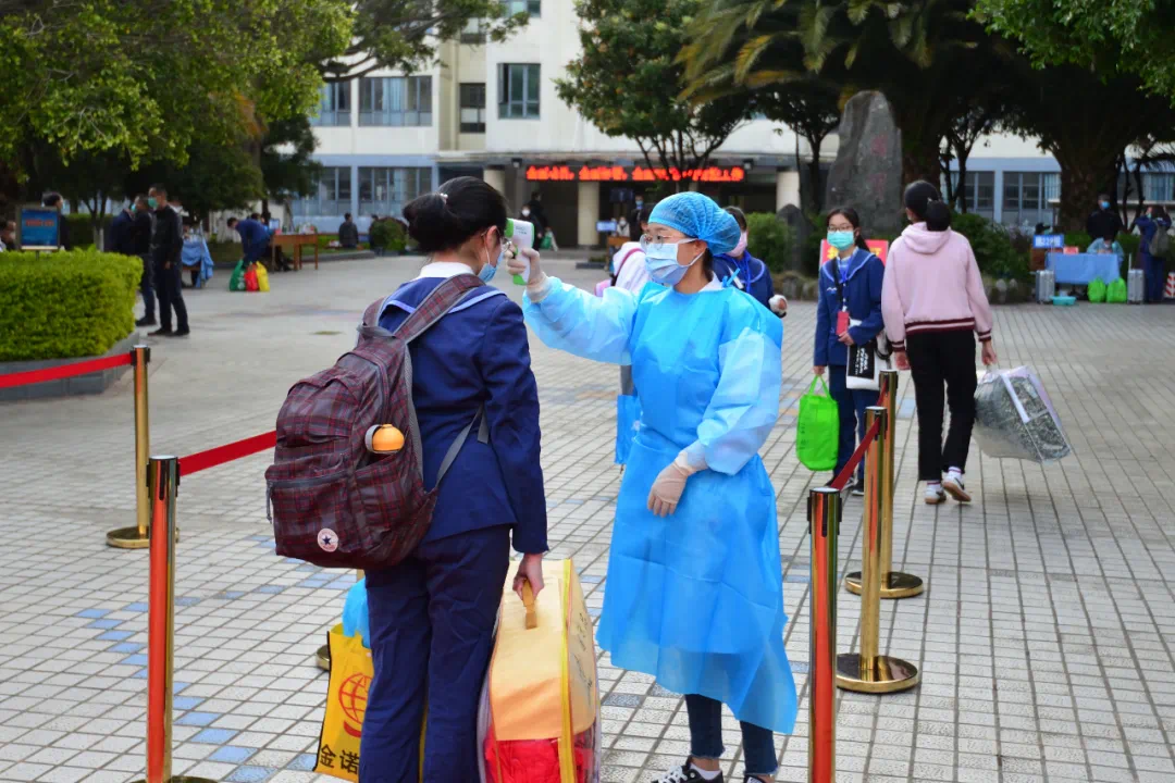 为确保广大师生的身体健康和生命安全,实现有效隔离和防护。学校严禁无关人员进入,相关人员进入学校需佩戴口罩,扫码并进行体温检测,严格登记。
