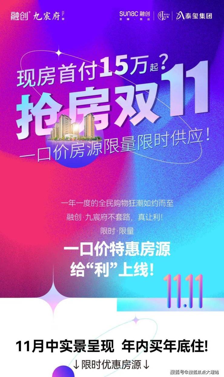 融创·九宸府 现房首付仅15万起?抢房双11 一口价房源限量限时供应!