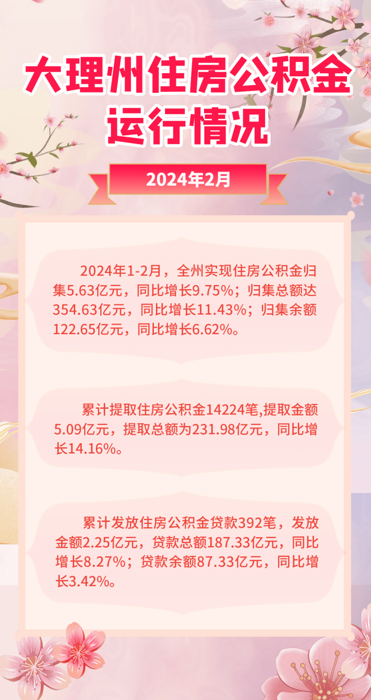 2024年1-2月,大理州全州实现住房公积金归集5.63亿元,同比增长9.75%....