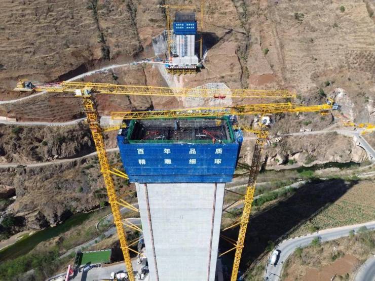 鲁巧高速牛栏江特大桥3号主墩顺利封顶