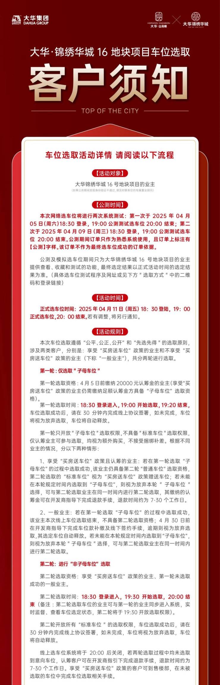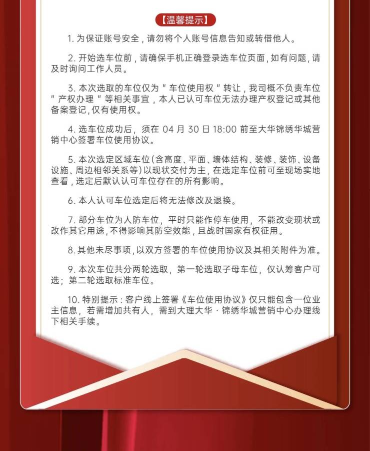 大华·锦绣华城 16 地块项目车位选取客户须知