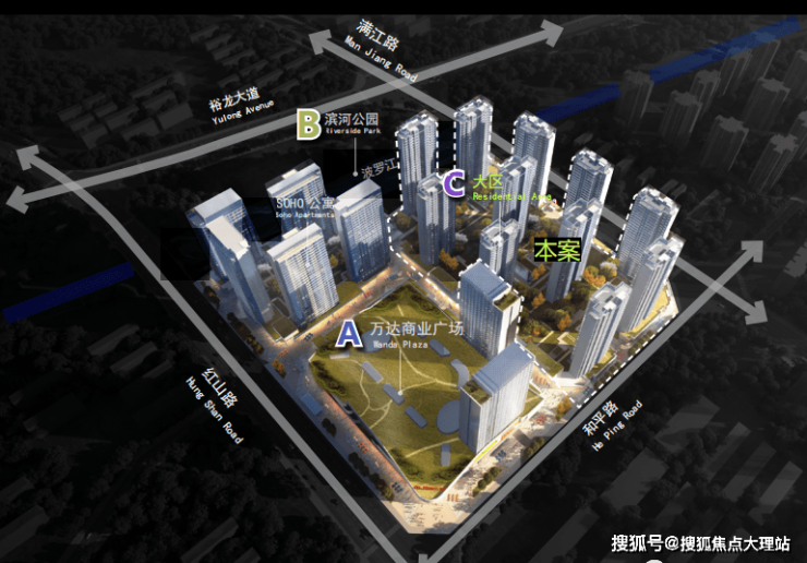 项目东临满江路,西临红山路,南临菠萝江,占地147亩,总建筑面积约47万平方米,总投资40多亿元,方形的大型建筑物就是我们13万㎡的城市综合体,携手国内著名商业管理机构管理—万达商业,为建设“滇西城市商业中心”和集购物、娱乐、商务、度假、高品质住宅于一身的现代化城市中心,形成独立的商圈,打造大理国际一流旅游度假城市、世界级休闲度假旅游目的地作出贡献。