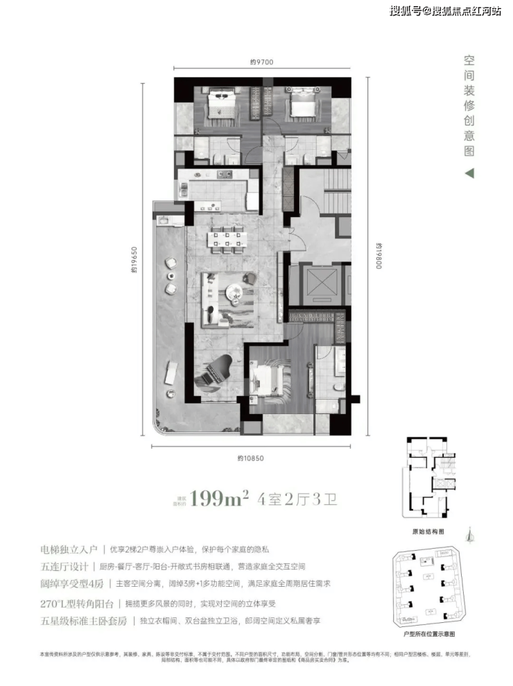 精装交付:158-199户型装标4500元/㎡,269㎡户型6000元/㎡