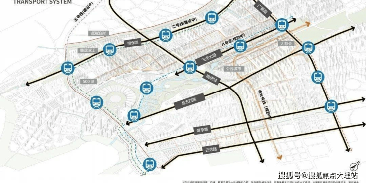 片区呈现“三横五纵”的立体交通网络,多条轨道交通线路,交通出行便利;未来将规划打造社区巴士以及健康慢行系统,以促进友好邻里氛围和生态低碳生活。