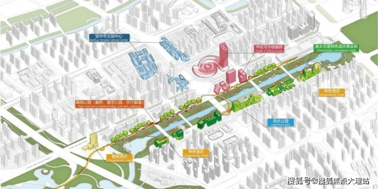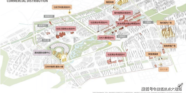 【城市级】沿公园城市项目旁滨河商业两侧规划打造70万方的城市级商业底盘——七彩天地(暂定名),基于新海河自然生态系统,落位2个购物中心、3个主题商业街区以及商业底商/盒子,目前首个组团已开工,计划24年底开业。