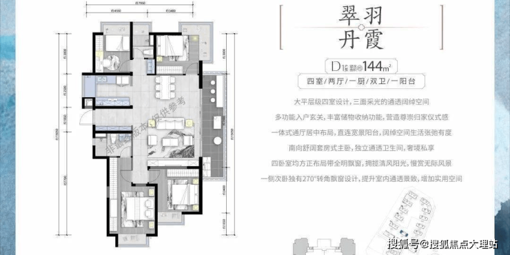 为城市上升期家庭而定制的功能型住宅产品,在方正的产品内,保证每一寸空间都不被浪费。整体空间动静分离,110㎡设计中依然坚持每一种生活都不会被打扰,不但更好地保证了超强的使用功能,更重要的是为功能三房带来了更优的尺度与空间。建面约110-144㎡臻装宽居大宅。
