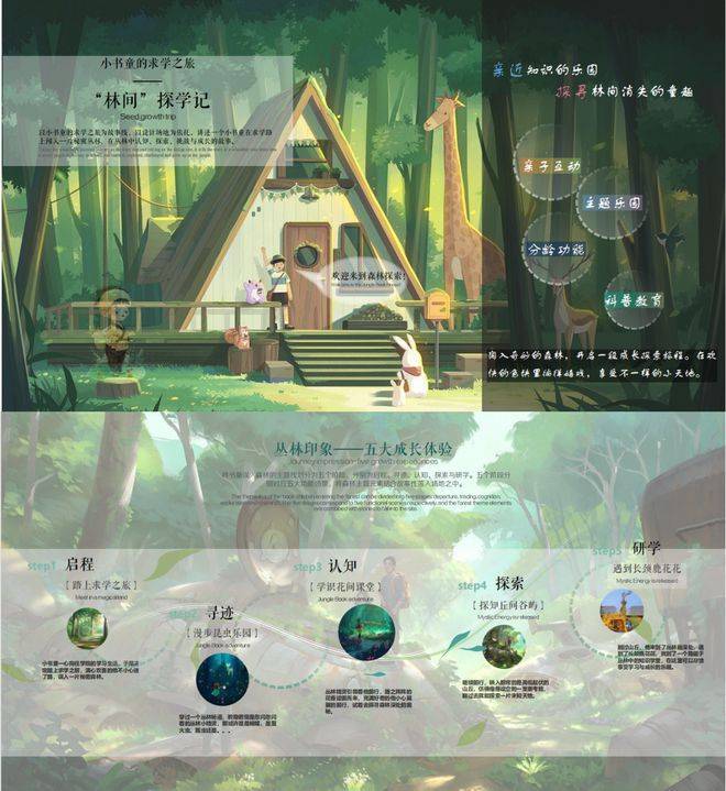 3、社区升级-昆明最友好儿童成长型社区 小区园林打造“童学秘境、林中探学”全龄学堂,对应五大成长体验:启程、寻迹、认知、探索、研学;匹配五大功能场景,将森林主题元素结合故事性落入其中。