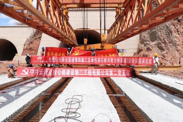 牟元高速石蚌沟箐大桥双幅顺利贯通