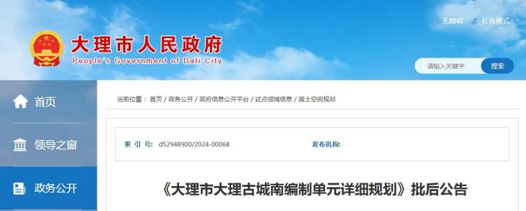 近日,《大理市大理古城南编制单元详细规划》经市人民政府批复实施(大市政复〔2024〕39号),依据《中华人民共和国城乡规划法》和《城市、镇控制性详细规划编制审批办法》的相关规定,现将规划成果进行批后公告。