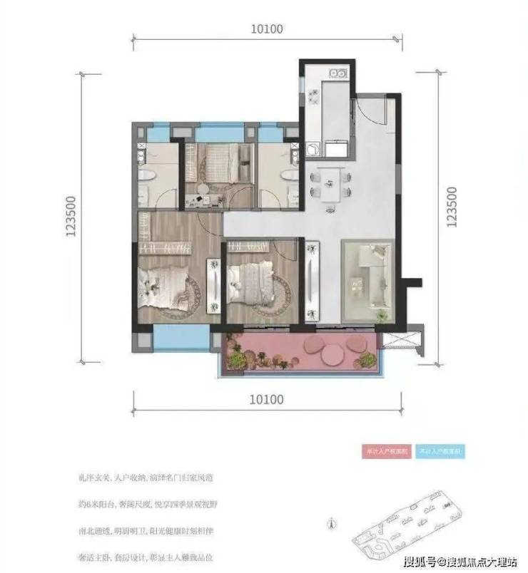 B户型99㎡,三室两厅两卫