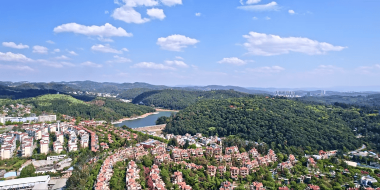 项目被金殿国家森林公园、呼马山郊野公园、世博园三大生态公园环抱,森林覆盖率在70%以上,负氧离子含量是翠湖的3倍,宛如城市绿肺。内部打造昆明首个五级台地景观社区,结合水系、植被形成立体园林,部分楼栋可直面金殿景观,实现 “推窗见绿、移步换景”,仿佛置身于森林公园之中。在繁华都市中,为业主提供一片静谧的绿色家园,让您在享受城市便利的同时,尽情呼吸新鲜空气,拥抱大自然。