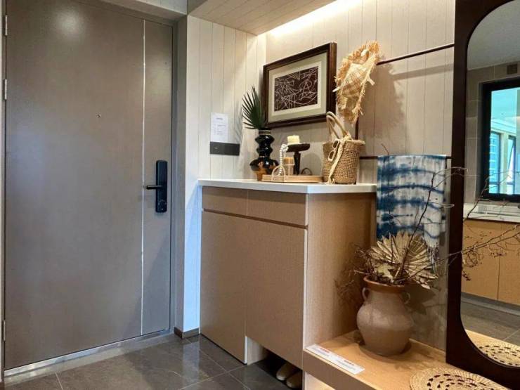 玄关,这个看似不起眼的家居角落,实则蕴含着无尽的创意与智慧。在99㎡样板间的玄关设计中,拾叁月贴心设计行李箱玄关柜、可调节鞋柜、四重收纳空间,提升出门及归家的效率,开启从容度假生活。
