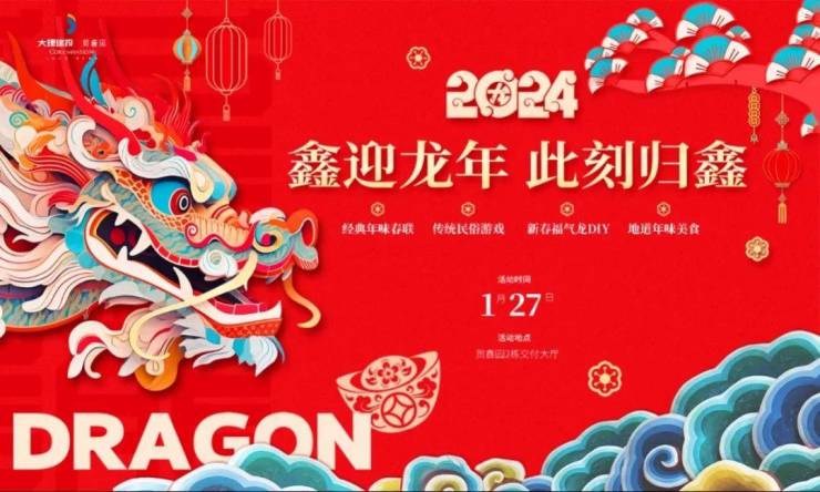 为了迎接2024年新春的到来,弘扬中国传统文化,丰富大理建投·贸鑫园业主家人们的文化生活需求,大力发展和繁荣社区文化,在社区中形成健康向上、文明和谐的节日文化氛围,大理建投·贸鑫园将于1月27日开展以“鑫迎龙年·此刻归鑫”为主题的新春活动,希望能为业主家人们带来充满生活气的浪漫与节日的仪式感。