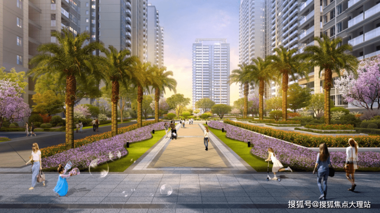 品质匠心筑就美景无限。项目 设计归家景观大道,延用主入口轴线的对称式设计, 采用迎宾树阵和艺术精光灯,延续人行的尊贵归家体验,在夜晚灯光亮起后序列感和艺术感尤为强烈。