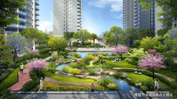 艺术追求创造人与自然的融合。 “超级视线通廊”的设置,以超过2400㎡的水景为载体,动物小品、自然汀步、水生植物等可视化视觉符号精致布局与陈设,呈现 “外有锦绣、内藏乾坤”的归家底蕴,为生活缔造出更多的从容与优雅!