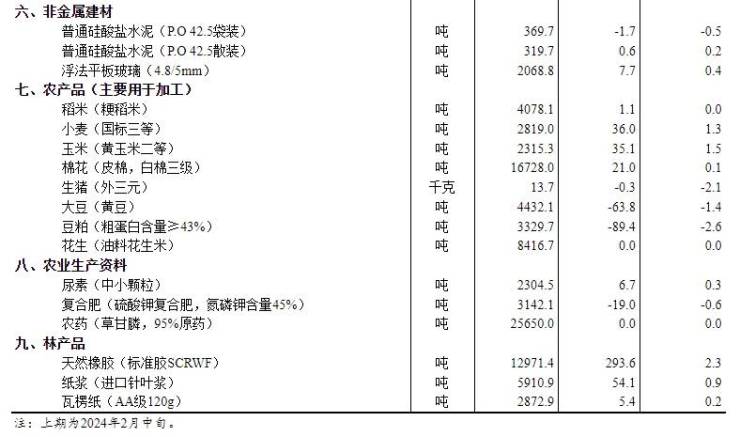 2024年2月下旬流通领域重要生产资料市场价格变动情况