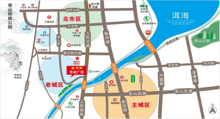 医疗资源优势:龙金广场周边更有多所大型医院为您和家人保价护航,大理市第一人民医院、大理大学第一附属医院都在周边,包括到大理州医院、大理州中 医院仅 5 分钟的车程即可达到,医疗配套非常完善。