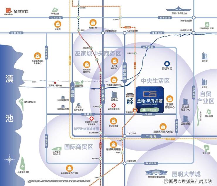 “五馆一园一剧院”的丰富人文配套(滇池流域生态文化博物馆、云南省博物馆、云南文学艺术馆、官渡区民族博物馆及新亚洲体育馆)