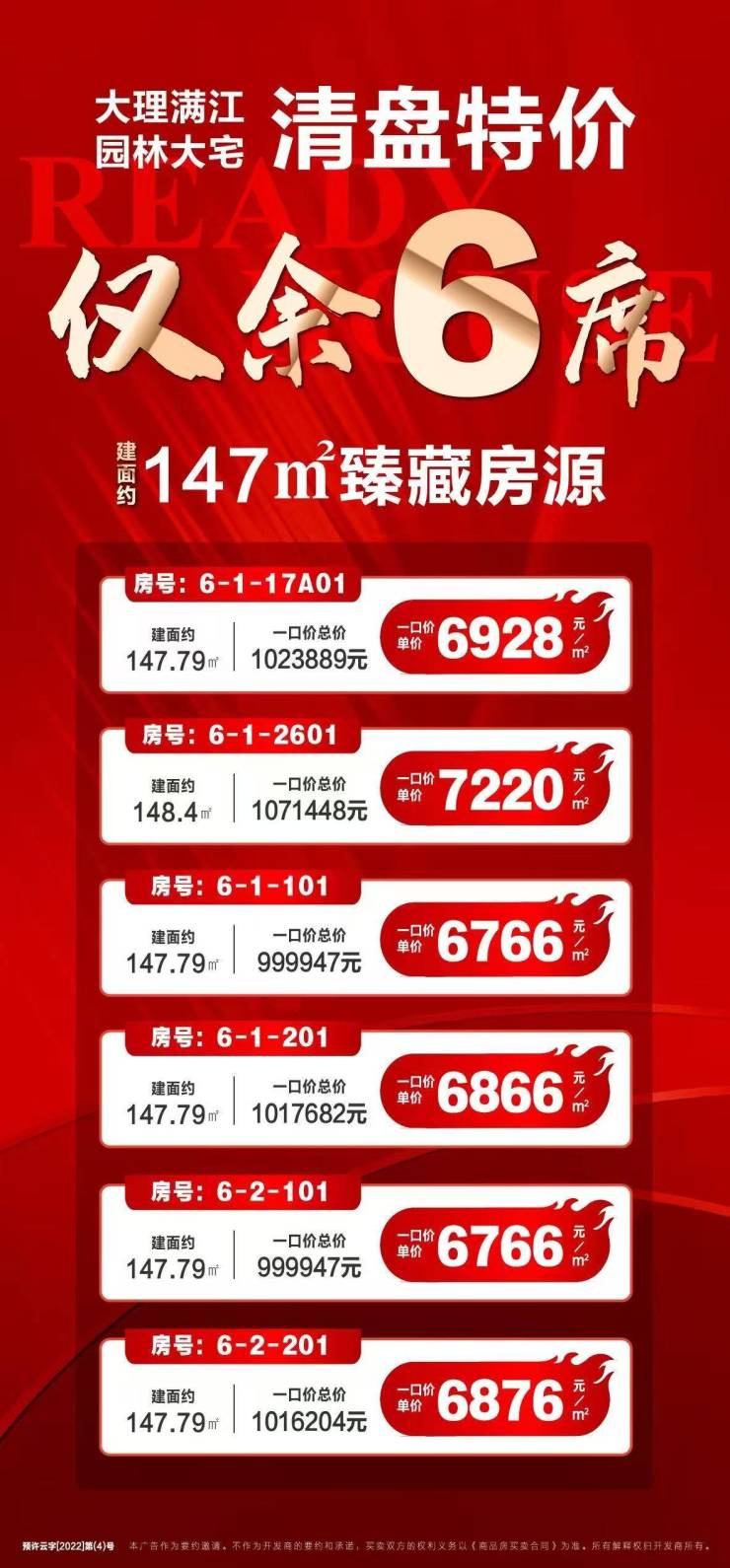 海川·十园八景,大理满江园林大宅,建面约147㎡臻藏房源,清盘特价,仅余6席!关注海川·十园八景的朋友可前往售楼处现场看房,咨询房源信息请拨打电话400-156-0036 转 426610!