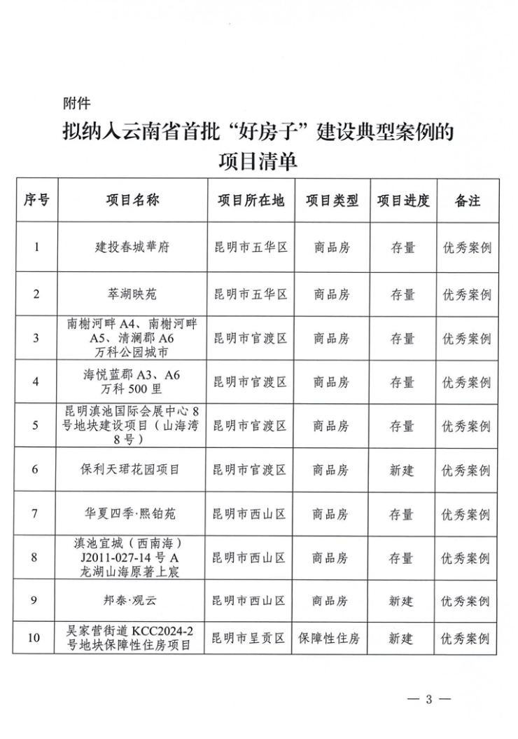 云南省住建厅关于云南省首批 “好房子”典型案例名单的公示