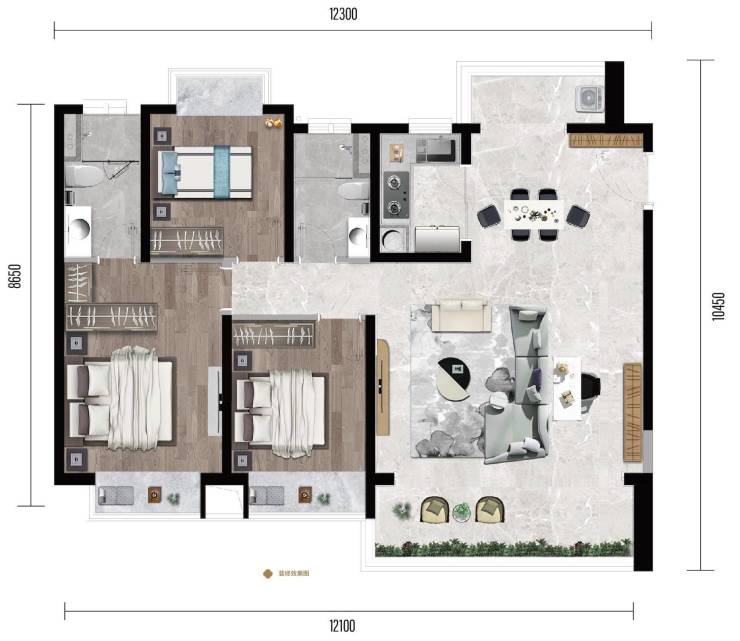 前后开阔视野,客厅6.1米超大横厅,双卫设计,明厨明卫,2+1户型改造空间