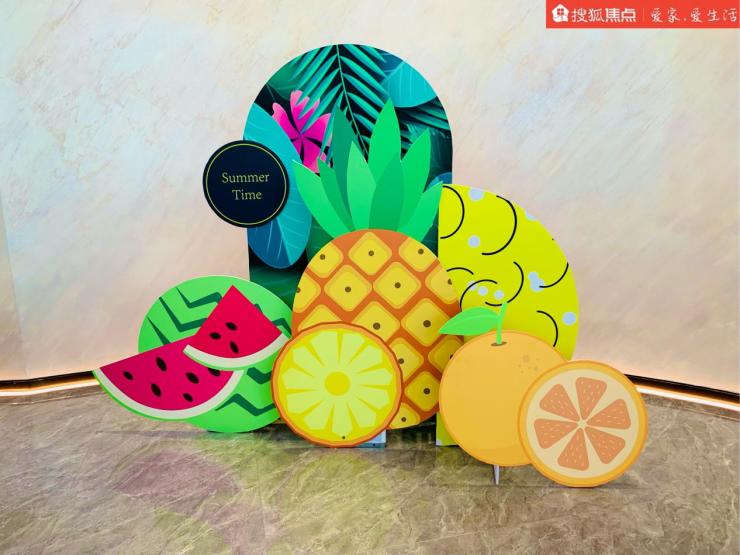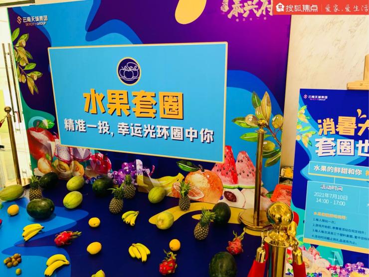 下午2时,营销中心早已热闹非凡,一走进营销中心,就闻到了一阵浓甜的瓜果香,仿佛全世界的水果都在“争奇斗艳”。