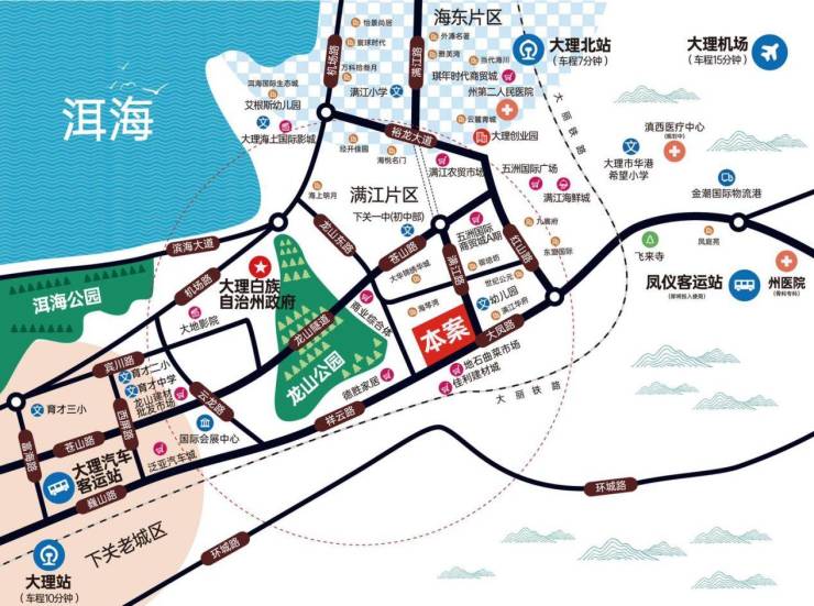 地段:满江核心,两大主干道环绕。老城区15分钟,高铁站10分钟,飞机场25分钟,大理门户。