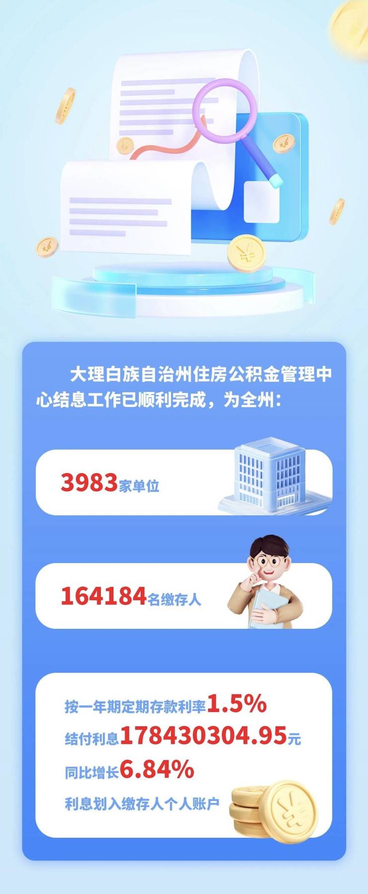 大理白族自治州住房公积金管理中心结息工作已顺利完成,为全州3983家单位...