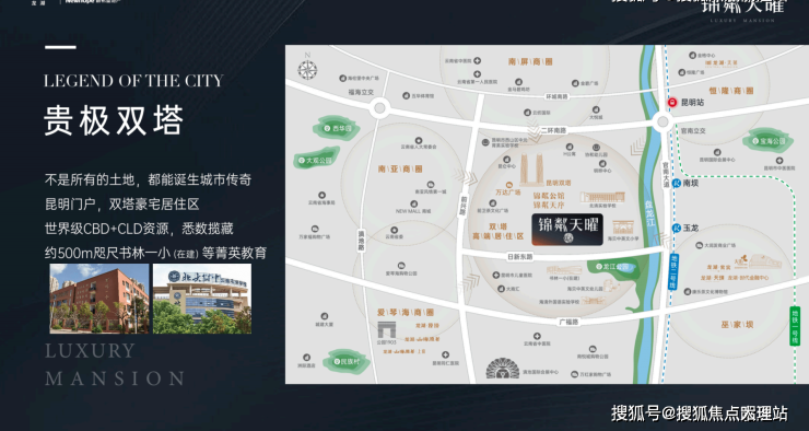 2、 在昆明最纯粹的豪宅板块中,锦粼天曜位于板块绝对C位,城市级地标万达双塔之下,不仅是区域豪宅标杆,更会是立序昆明的豪宅标杆。
