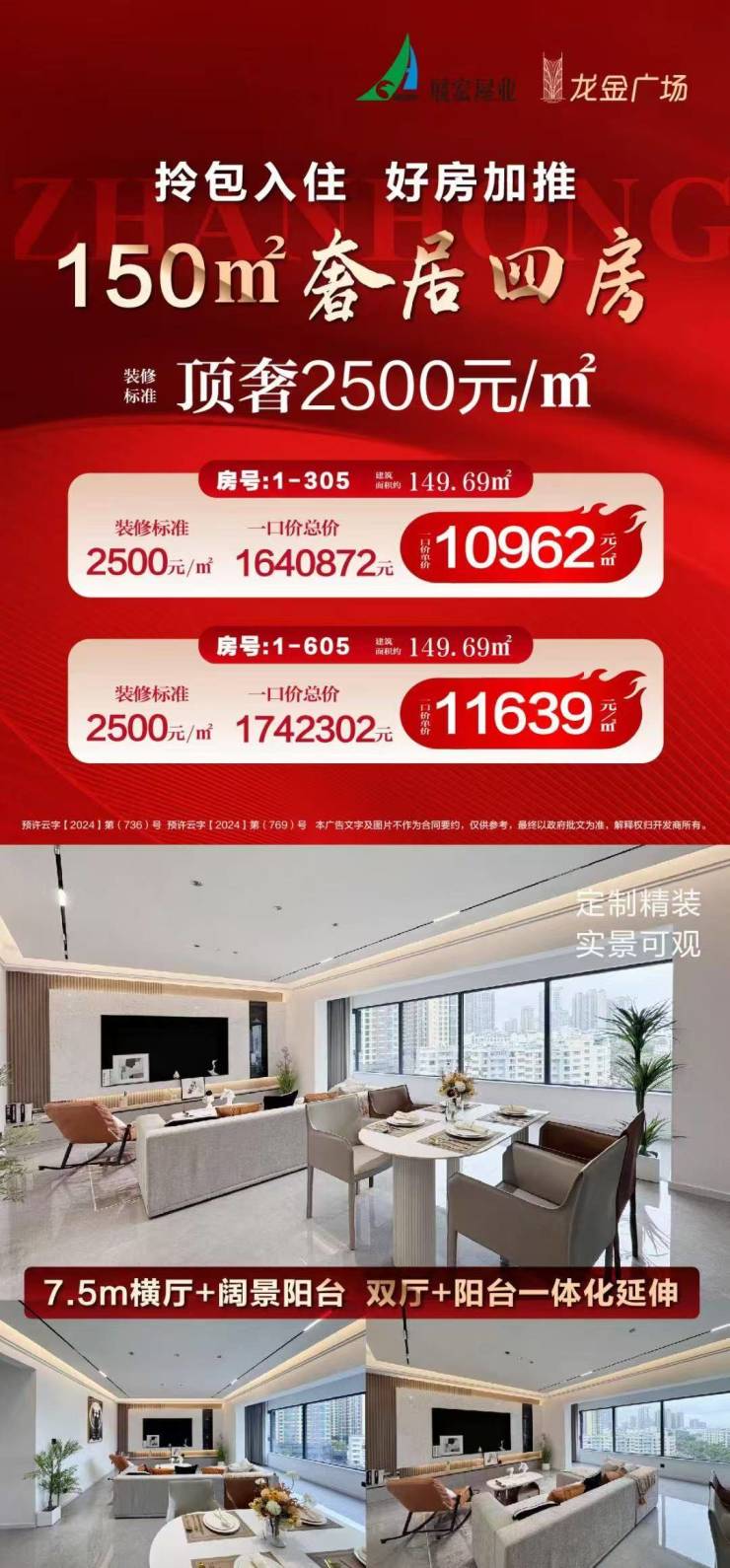 展宏·龙金广场,奢居四房好房加推,一口价拎包入住!关注展宏·龙金广场的朋友可前往售楼处现场看房,咨询房源信息请拨打电话4001560036 转 451395!