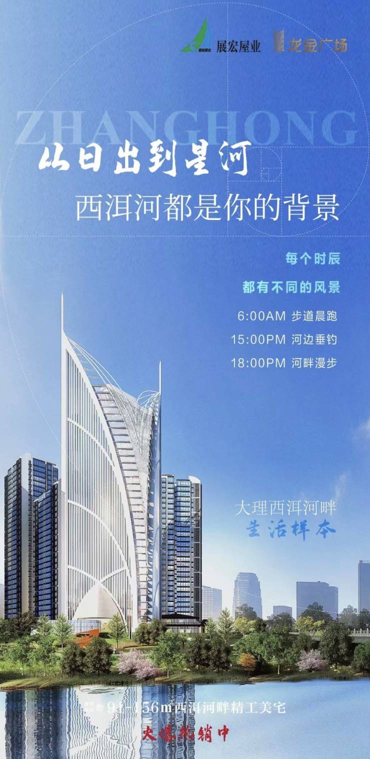 展宏·龙金广场,建面约91-156㎡西洱河畔精工美宅,火爆热销中!关注展宏·龙金广场的朋友可前往售楼处现场看房,咨询房源信息请拨打电话4001560036 转 451395!