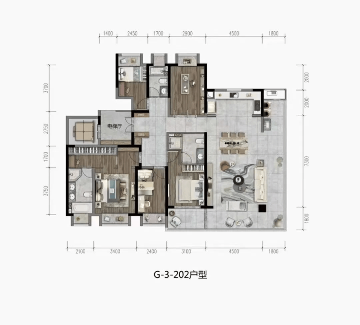 202㎡五房两厅一厨三卫 (精装)