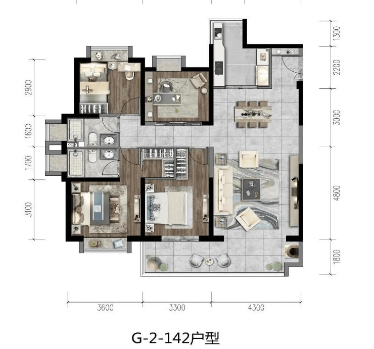 142㎡四房两厅一厨两卫:(毛坯、精装)