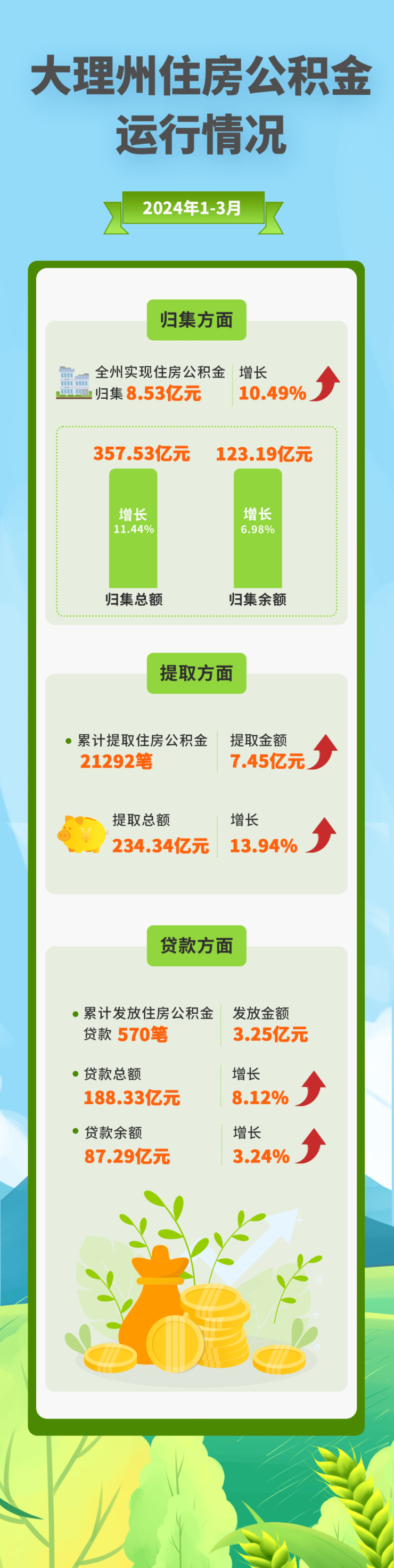 2024年1月-3月,大理州实现住房公积金归集8.53亿元,增长10.49%...