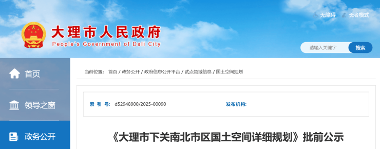 近日,大理市人民政府网发布了《大理市下关南北市区国土空间详细规划》批前公示。