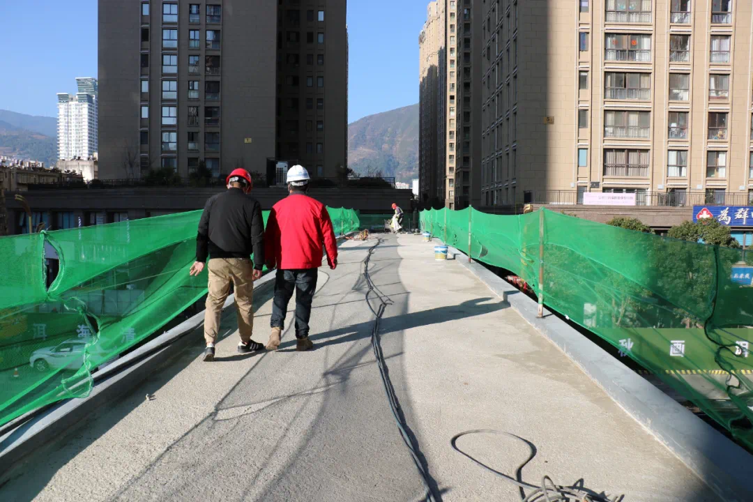 为了确保按时完工,我们加大人力投入,将施工队分组,采用几班倒的方式施工,同时增加夜班。为了减少对附近居民的影响,我们夜班不进行大机器的作业,尽量降低施工影响。也希望大家能够给予我们理解,我们争取让大家在过年期间使用上人行天桥。