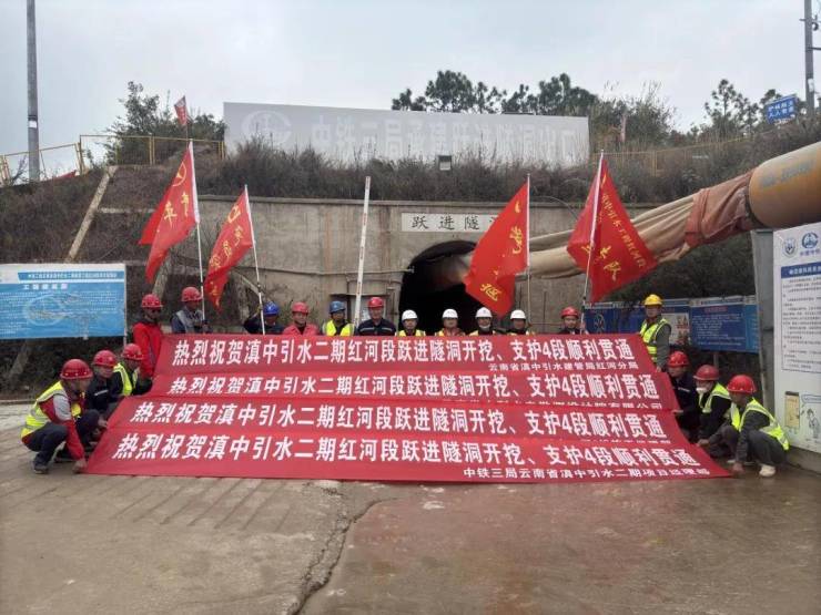 近日,滇中引水二期配套工程红河段建水干线跃进隧洞出口与3#施工支洞下游顺利贯通。跃进隧洞全长8597.00米,采用圆拱直墙型,共设有3条施工支洞。本次贯通的跃进隧洞出口全长1384.00米,采用全断面爆破开挖,埋深60.00至75.00米。