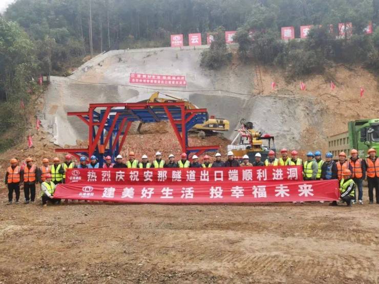 近日,西林至广南高速(云南段)安那隧道出口右幅顺利进洞。安那隧道是西林至广南高速控制性工程,为分离式隧道,左幅全长3155米,最大埋深278.29米;右幅全长3157米,最大埋深275.54米。
