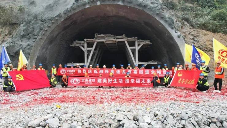 1月3日,那洒至兴街高速一分部龙西寨隧道全幅正式贯通。该隧道为分离式隧道,左幅长1723米,右幅长1768米。