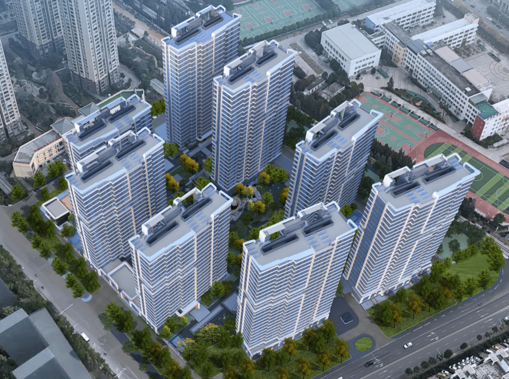 建筑类型:拟建8栋住宅,总高15-25层,楼栋呈围合式布局,小区中间拥有大中庭,且配有部分底商。