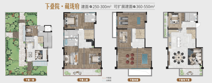 双层挑高地下室,可自由拓展夹层,奢阔的空间,为各种生活意趣营造多元私密空间,既可以承载家人更多日常生活方式,还能培养主人的个性喜好与艺术内涵。