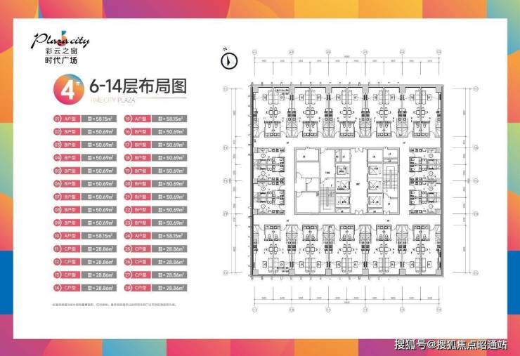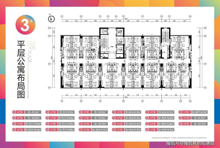 3#为平层产品,共计28层,其中1-4F为商业部分,5-28层为平层产品,4T23户,产品建筑面积区间:34~50㎡之间。