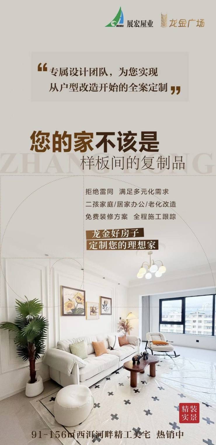 展宏·龙金广场,建面约91-156㎡西洱河畔精工美宅,热销中!关注展宏·龙金广场的朋友可前往售楼处现场看房,咨询房源信息请拨打电话4001560036
