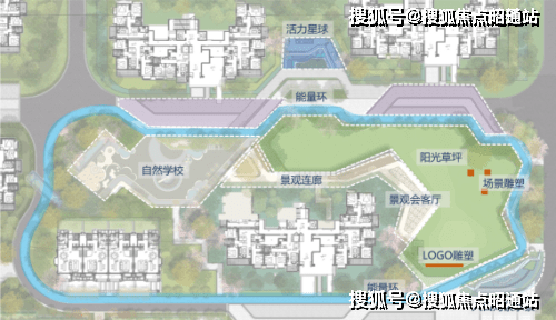 中心社区景观“能量环”链接,将自然学校、充满活力的阳光草坪连接成高层区东侧的大中心花园。“能量环”是一个全长340m环形跑道,环绕中心景观区,设有热身区、超越区、饮水点、点灯等配套设施。