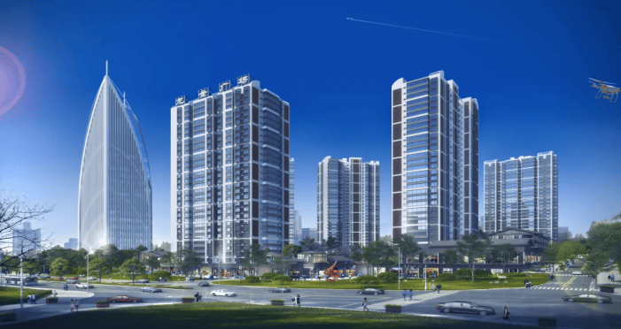 项目共规划 9 栋高层住宅、一期共6栋,其中 1、2、5为住宅, 6栋为甲级写字楼,8栋、9栋均为两层商业,同时项目自带智慧农超, 便捷生活。项目设计理念以人居生活为核心,打造集成管理、服务高新、环境优美、产品智能化的全新悦享生活社区典范。