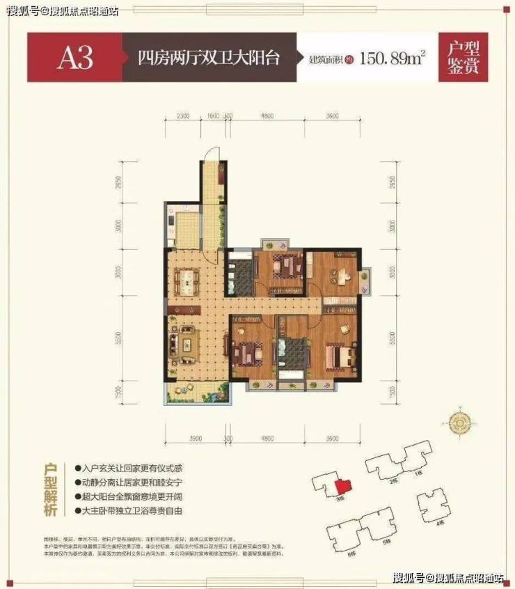 在售户型有两房89㎡,三房125-132㎡、四房150-155㎡