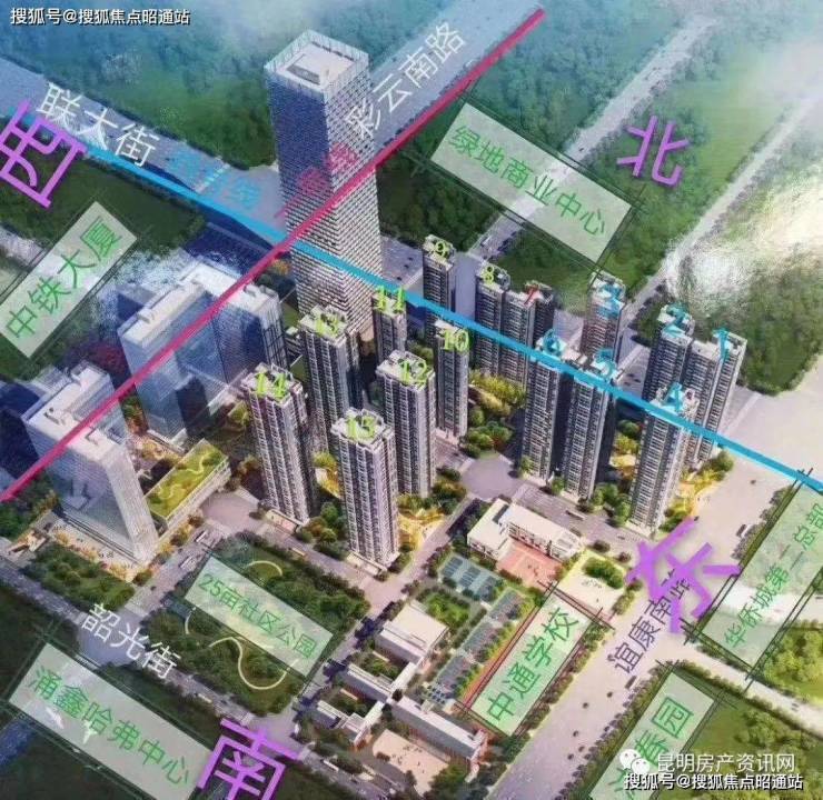 项目位于昆明 呈贡新城正中心位置:彩云南路与联大街交叉口东南角,1号线与4号线地铁交汇站口,无缝联接双地铁线。项目在昆明市政府、昆明高铁站、大学城三大区域正中间,间距仅两公里,属于新呈贡真正的核心之地。