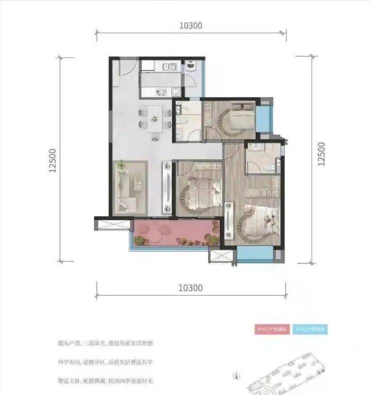 C户型115㎡,三室两厅两卫