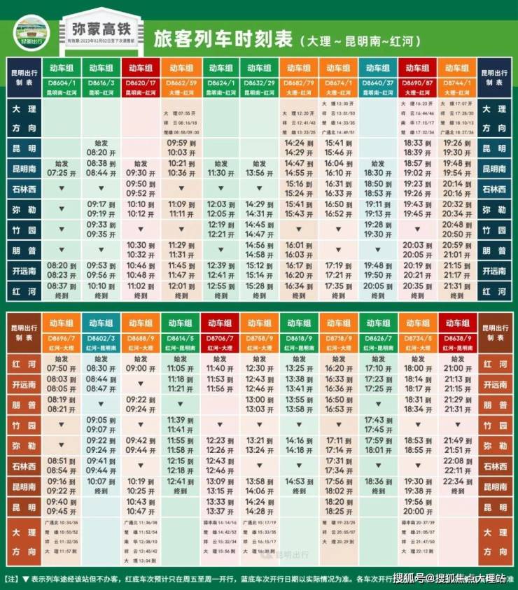红河-大理直达动车来啦!弥蒙高铁新时刻表出炉!